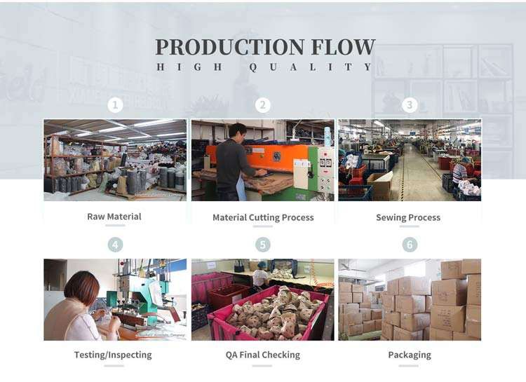 Nou kontwole ak tcheke tout etap sa yo nan pwodiksyon, soti nan konfimasyon logo, acha a nan materyèl, kòmanse jou nan koupe materyèl, voye echantiyon pre-pwodiksyon pou konfimasyon, vitès pwodiksyon, procesna, nan anbake soti nan faktori trape dat la fèmen. Si nenpòt pwoblèm, nou pral imedyatman korije, oswa ranplase, achte nouvo materyèl, re-pwodwi a nenpòt pri. Epi nou pral rapòte bay kliyan.